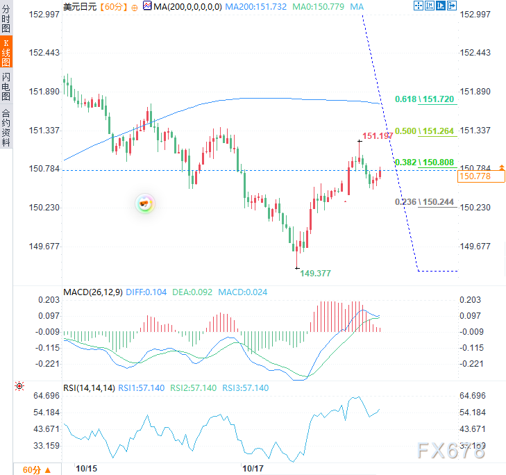 上行方面,日内上涨行情推动汇价测试近期月低下跌走势的38.2%斐波那契回撤位(150.82)阻力。此外,小时/日线图上的正向摆动指标支撑汇价进一步升向151.75附近共振阻力区——该区域汇聚61.8%斐波那契回撤位(151.73)与200小时简单移动平均线(151.73)。若能有效突破该共振阻力带,美元兑日元有望冲破152.00关口,并向152.25附近的下一阻力位攀升,最终挑战153.00大关。